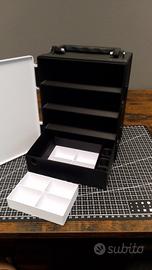 Valigetta porta mini4wd e porta accessori, tutto organizzato per la pista. 3 spazi telai 1 cassetto porta attrezzi/minuterie portamotori
