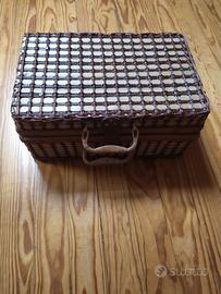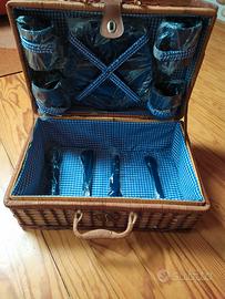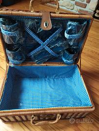 Valigetta pic-nic in vimini completa di piatti, bicchieri e posate x 4 persone. buona qualità. Mai usata, praticamente Nuova.