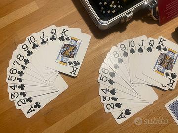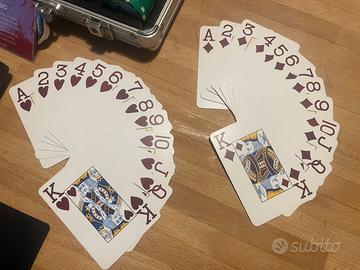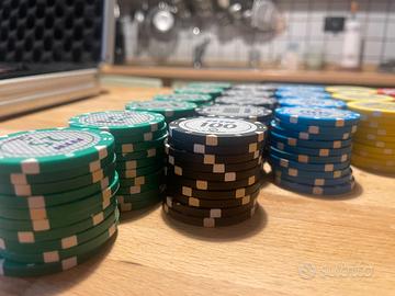 Vendo prestigiosa valigetta da Poker professionale marchio Juego, certificata dalla FITH (Federazione Italiana Texas Hold'em). Un set di alta qualità, acquistato qualche anno fa ma utilizzato solo un paio di volte: le condizioni sono eccellenti, praticamente da vetrina. Il set include: 200 Chips Juego professionali, modello tournament fith da 14g, in ABS ad alta densità con inserto metallico pesante. La distribuzione è perfetta sia per Cash Game che per Sit & Go (pile da 10 pezzi visibili in foto per verifica): 60 x valore 25 50 x valore 100 40 x valore 500 30 x valore 1000 20 x valore 5000 1 Mazzo di carte Juego Jumbo Index: 100% plastica, professionali e complete (verificabili dalle foto). Accessori Originali: Carta nera (cut card), bottone Dealer, dadi (ancora incellofanati!) e il rarissimo Timer Juego originale per gestire i bui. Certificazione: Include il certificato di autenticità Juego. Dettagli: La valigetta in alluminio è solida e l'interno è perfettamente conservato. Si tratta di un prodotto professionale, lontano dai set economici, ideale per chi cerca il vero feeling del tavolo verde.