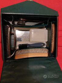 Valigetta in dotazione alla Polizia di Stato per gli Agenti in missione. Contiene spazzole per abiti e spazzolini per scarpe, specchio, portasapone, portasapone da barba, sacchetto contenitore.