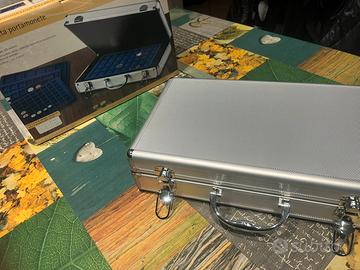 Vendo valigetta portamonete, adatta per 205 monete, con 5 piani di appoggio vellutati per tutte le grandezze delle monete. Chiudibile con 2 chiavi incluse. In scatola, mai usata, come nuova.