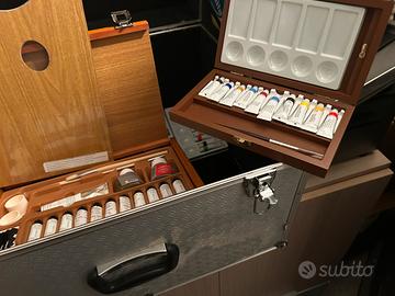 Valigia con raccolta fascicoli come imparare a dipingere con varie valigette con colori a olio, tempera e acquarelli. Mai usato. Una valigetta non e’ completa