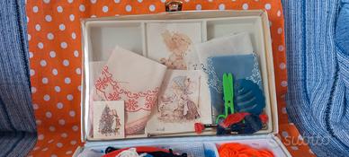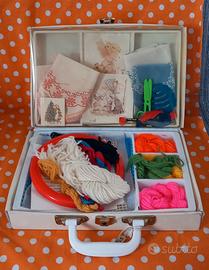 Valigetta con set cucito e ricamo giocattolo di lilli beth vintage alcuni segni del tempo nella scatola