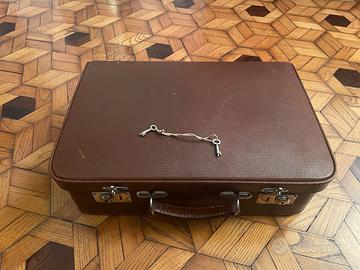 Valigetta set toeletta da viaggio anni 50 circa con accessori 35x20x10 cm spazzole in legno, pettine, contenitori vari in vetro, altri accessori. Apertura a scatto, con chiave Oggetto raro e da colezione