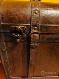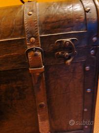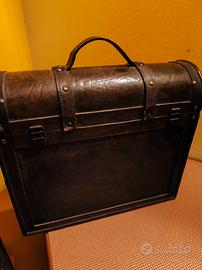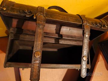 n. 2 valigette in legno con rifiniture in pelle. interno in legno.