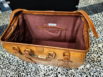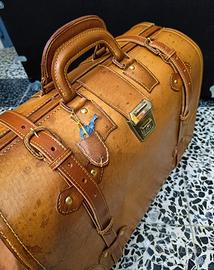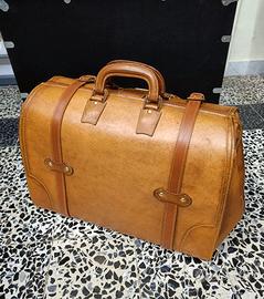 Splendida e rara valigia Baule vintage in pelle naturale color Cognac per vetrina o per auto d'epoca fiat 500 bmw mercedes masserati lancia appia romeo spider sidecar morgan topolino maggiolone ecc.......