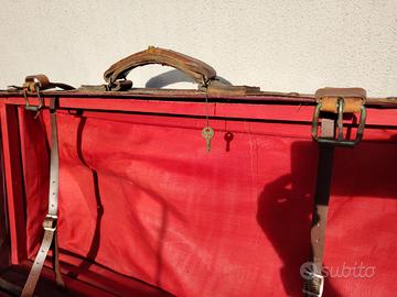 Valigia vintage in cartone. Foderata. Cinghie in pelle. Molto ampia e capiente. Dimensioni 37 x 76 x 31 Fodera interna priva di lacerazioni