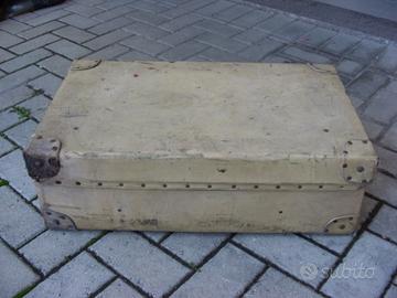 DI MANIFATTURA INGLESE, ASSOLUTAMENTE INTROVABILE DI GRANDE VALORE ECONOMICO RARISSIMA PERFETTA COME ARREDAMENTO O PER PURO COLLEZIONISMO , COLOR AVORIO, RINFORZI ANGOLARI E RIFINITURE IN OTTONE, NON HA LE CHIAVI, NON HA ROTTURE, SOLO QUALCHE SEGNO DEL TEMPO, INTERNO PERFETTO, CINGHIE ALTRETTANTO. OTTIMO CONSERVATO, COME DA FOTO HA LE INIZIALI M.G