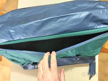 Le dimensioni massime a pieno carico della borsa sono altezza 40 cm larghezza 55 cm e profondità di 25 cm.