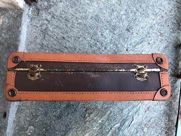 Valigetta anni 50 , materiale cuoio e cartone pressato , 12 x 40 x 26 cm , buone ottime condizioni , no rotture solo normali segni di utilizzo , vendita con formula visto e piaciuto , ritiro e pagamento di persona o spedizione a carico dell’ acquirente cioccolato caramelle Zeda birra pallanza Sempione baratti Milano talmone longines orologio rasoio lamette radio Marconi la voce del padrone Columbia mickey mouse topolino stufa economica putagè