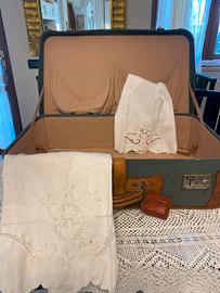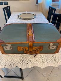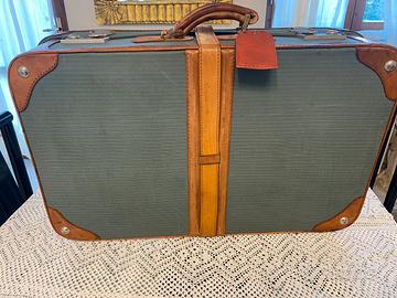 Valigia vintage color verde e cuoio. Solo segni del tempo e senza difetti particolari. La chiusura a scatto funziona 66x40x 17