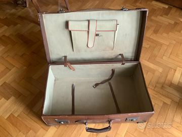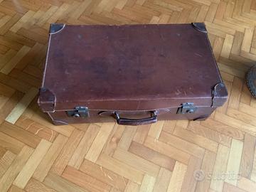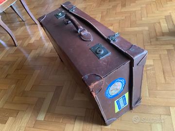 Vecchia valigia interamente di cuoio dei primi del novecento, chiusure funzionanti , interno non rovinato, con tre adesivi , due si riferiscono ad alberghi austriaci, la terza ad un albergo sulle Dolomiti , dimensioni 68 x40 x 23 presenta graffi sul fondo e di lato facilmente eliminabili con prodotti per il cuoio
