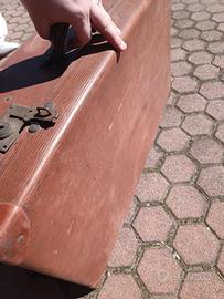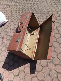 🧳 Valigia vintage rigida marrone Valigia vintage rigida in colore marrone, dallo stile retrò. Ideale come oggetto d’arredo, per collezionisti o per utilizzo creativo (es. scenografie, allestimenti, contenitore decorativo). 📏 Dimensioni: medie (vedi foto) 🎒 Manico originale 🔒 Chiusure presenti (da verificare funzionamento) 🔎 Condizioni: Presenta segni del tempo e dell’uso (graffi, piccole usure e macchie), come visibile in foto, che ne valorizzano il fascino vintage. 💡 Perfetta per: arredamento shabby/vintage shooting fotografici collezionismo