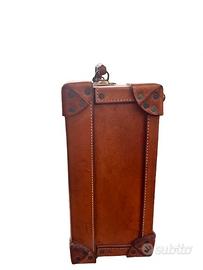 Questa magnifica valigia antica, in robusto cuoio color cognac, è un esempio eccellente di artigianato d'epoca. Presenta una splendida patina con segni di usura che ne raccontano la storia, angoli rinforzati e cuciture a mano. Le serrature e la maniglia sono originali, e include la sua rara chiave. L'interno è pulito e ben conservato, con un rivestimento in tessuto chiaro, un scomparto a busta e cinghie ferma-abiti in cuoio. Ideale per collezionisti, amanti del vintage o come elemento d'arredo unico, questa valigia è un pezzo autentico e affascinante.
