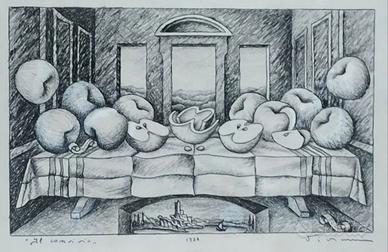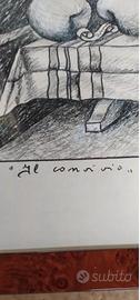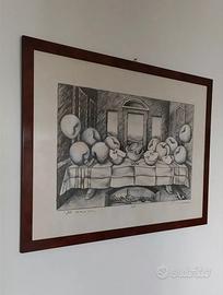 Vanni Viviani "Il Convivio" 1997. Disegno a tecnica mista su cartoncino cm 70x100. Opera firmata. Con prestigiosa cornice in radica.