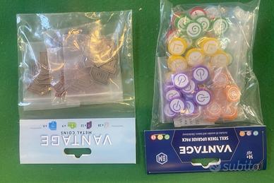Vantage (inglese) Metal coins Skill tokens Dual-Layered cardboard player mat pack Tutti nuovi con cellophane chiusi mai usati
