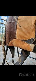Antica sella siciliana, risalente al 1900, in cuoio massiccio e ben conservata, con diverse parti cucite artigianalmente utilizzando cuoio integrato, il che conferisce a questa sella un aspetto unico e sui generis. Questo oggetto è perfetto per chi cerca un pezzo di storia siciliana, ideale per esposizione, ma anche per essere utilizzato su muli, asini o cavalli durante sfilate e manifestazioni. La lavorazione artigianale delle cuciture e l'uso di cuoio pregiato sono caratteristiche che rendono questa sella particolarmente interessante per collezionisti e appassionati di tradizioni siciliane. La sella si trova a Caccamo (PA) ed è proposta al prezzo di 350€, trattabili. Un’opportunità unica per aggiungere alla propria collezione un pezzo autentico dell’artigianato siciliano, che conserva intatte la sua funzionalità e bellezza.