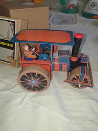 Giocattolo meccanico di latta raffigurante un rullo compressore, completo di scatola originale Vendo a euro 35