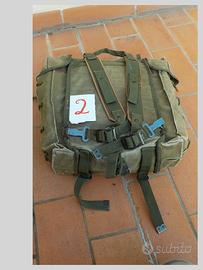 N° 2 E.I. Za 2 ino Tattico anni 70-80, tela Gommata, spazio unico centrale ,2 ampie tasche laterali regolabili con legacci. usato ma in buone condizioni.€25