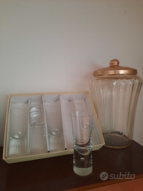 -Antico portaspezie da bottega anni 50 in vetro lavorato con coperchio in metallo (H cm 32 - Diam.nel punto massimo cm 19).