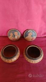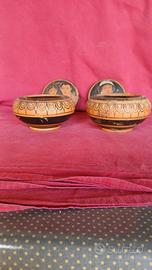 Coppia di buccheri, vasetti per cosmetici antica Etruria, prodotti e dipinti a mano.