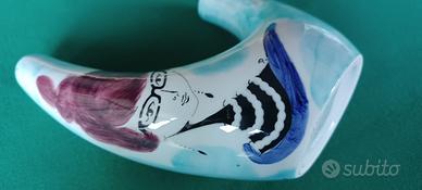 La decorazione è realizzata con colori vivaci e un tratto distintivo, suggerendo uno stile artistico o artigianale.