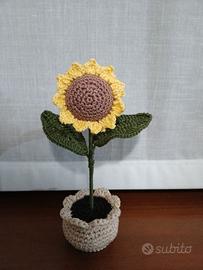 Vasetto con fiore, fatto ad uncinetto