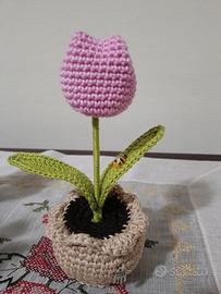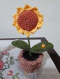 Vasetto con fiore a scelta, realizzato ad uncinetto Altezza circa 15 cm Prezzo singolo, sconto per ordini superiori a 3 pezzi