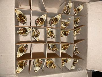 Vendo grazioso vasetto/brocca decorativo vintage, realizzato in ceramica con finitura lucida. Il pezzo si distingue per il suo design elaborato e scenografico, ricco di volute, riccioli e motivi organici che richiamano lo stile Rococò o Barocco. La colorazione è bicolore: un corpo principale bianco crema impreziosito da dettagli in marrone scuro, che mettono in risalto i rilievi e creano un piacevole contrasto.