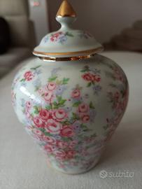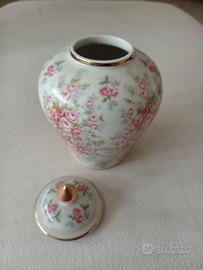 Splendido vasetto ornamentale (ginger jar) con coperchio in pregiata ceramica portoghese, realizzato dalla rinomata Cerámica Ibis di Aveiro.