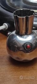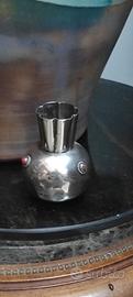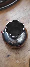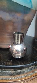 Bellissimo vasetto vintage in argento, impreziosito da piccole pietre rosse. Un oggetto raffinato e unico, perfetto per arredare con stile.