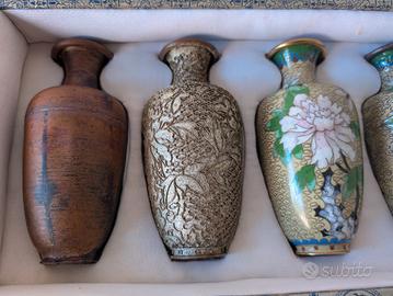 Vasi cinesi Cloisonne',serie da 8,con scatola originale,la serie e' composta dai vari processi di lavorazione .