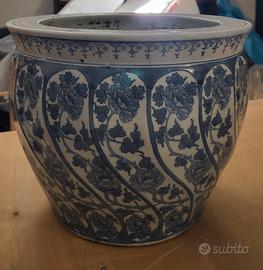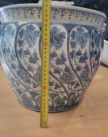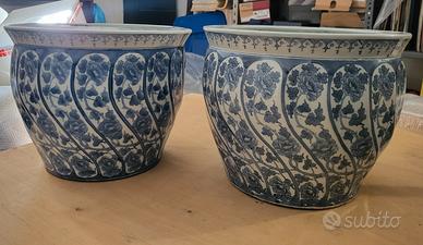Coppia vasi cinesi porta piante XX secolo colore bianco e blu no spedizione ritiro a mano a carico acquirente