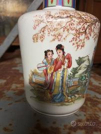 Vendo 2 Vasi cinesi in porcellana dipinti a mano - hanno diversi anni - condizioni buone ma uno si è rotto e mia figlia ha cercato di incollarlo con colla: il risultato non è dei migliori come da foto ma sono in buone condizioni. Hanno polvere vengono venduti puliti. No separati e non accetto offerte.