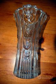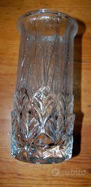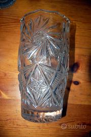 Vaso in cristallo di boemia con la sua tipica lavorazione. piccolissima sbeccatura e una un po' piu' grande sul punto di appoggio e piccolissima anche su bordo alto in corrispondenza di quello sotto.