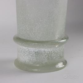 Vaso a tromba in vetro scavo bianco e incolore. Alla base fascia tubolare