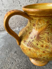 Vaso ad anfora vintage anni '60 in ceramica Deruta, dipinto a mano e decorato da bellissimi manici