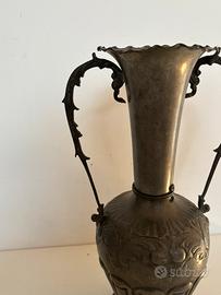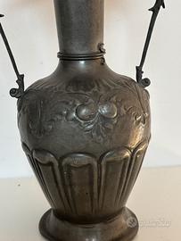vaso in peltro, fatto a mano. altezza 38 larghezza manici 20/21