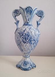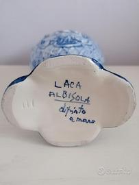 Vendo vaso biansato decorato a mano con motivo a reticolo, prodotto da LACA Forani Albisola, anni '60.