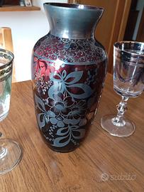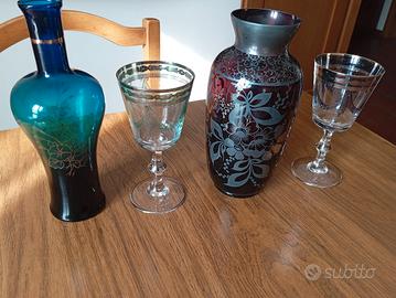 vaso da collezione decorazioni in argento. Due bicchieri decorati. Bottiglia con decorazioni dorate. Per info 3392101948 accetto offerte per il lotto o singolo pezzo