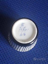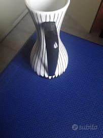 In ceramica, dipinto a mano anni 50 con marchio della produzione, peso totale gr 650 ,brocca H cm 21 diametro cm 6 ,vasetto H cm 7 diametro cm 6.