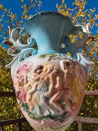 Realizzato in stile Capodimonte, non presenta alcun marchio impresso; doveva, probabilmente, esserci qualche etichetta sul fondo.