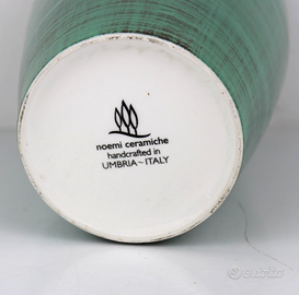VASO CERAMICA ACQUA MARINA Bellissimo Vaso in ceramica colore verde acqua, manifattura artigianale Umbra. Manifattura NOEMI CERAMICHE, handcrafted in Umbria - Italy. Il vaso si presenta in perfette condizioni, privo di difetti. Diametro Superiore 12 cm. Diametro Base 9 cm. Altezza max 22 cm. Si garantisce una spedizione accurata.
