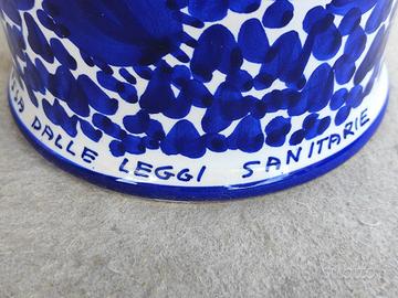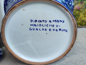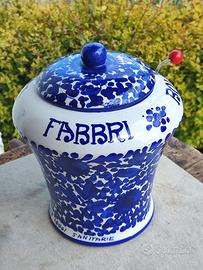 Stupendo vaso in ceramica dipinto a mano amarene Fabbri di Bologna, completo di mestolo, maioliche Gualdo e Deruta, senza rotture
