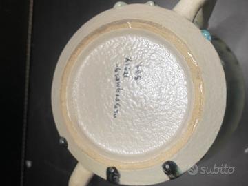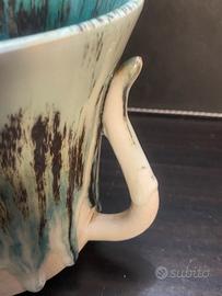 Smalto Colato (Dripping Glaze): La tecnica impiegata è la straordinaria smaltatura a colatura, con un effetto a "cascata" di tonalità Verde Acqua, Nero e Crema, che rende ogni pezzo unico.