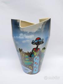 Splendido vaso d’arte in ceramica policroma di manifattura italiana, risalente alla metà del XX secolo (ca. 1950-1960).