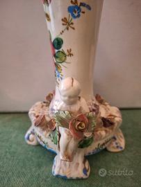 Vaso a tromba in ceramica dipinto a mano nei modi tradizionali delle manifatture venete del XIX^ sec. (Bassano? Vicenza?)