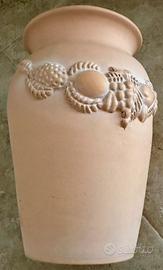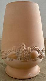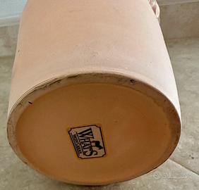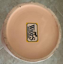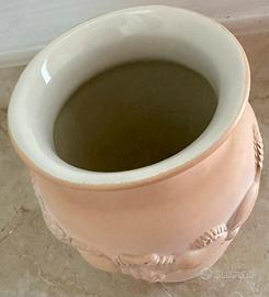 Vaso in ceramica lavorato a mano con decorazioni autunnali colore rosa pastello della ditta What's Vincent Cadeaux. Il vaso è nuovo si trova in ottimo stato reca sul fondo il marchio del produttore. Ha altezza 20 cm e diametro massimo 11 cm. Sarà accuratamente imballato e spedito.