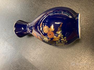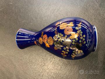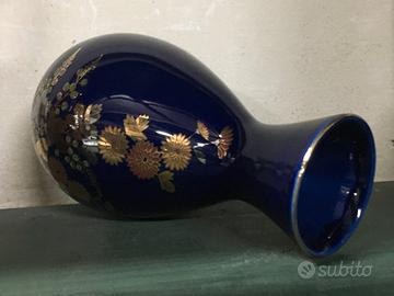 Vaso Cinese Blu lucido con inserti di colore oro e altri colori caldi alternati su un motivo floreale classico. In Finissima porcellana !
