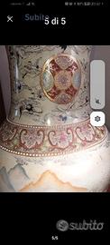 Vaso cinese con piedistallo tutto lavorato nei disegni nei minimi dettagli. Piedistallo in legno